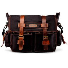 노트북 메신저 백 빈티지 캔버스 가죽 크로스바디 사첼 숄더 컴퓨터 가방 여행 사무실 회색. 14-17 남성용 밀리터리, 블랙_36cm(14인치), 블랙_36cm(14인치), 1개