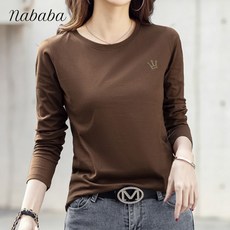 나바바 NT606 여성 심플 왕관 포인트 라운드넥 긴팔 티셔츠