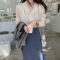 비침없는 V넥 루즈핏 긴팔 블라우스 여리여리 하객 면접 정장 [셀디]