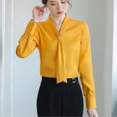Lovin closet 국내생산 가을 긴팔 타이 블라우스 브이넥