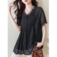 빌리즈빈 여성 시스루 벌룬 브이넥 레이스 하객 블라우스 5263