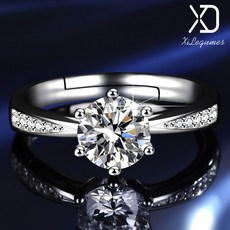 FANSYLI 1캐럿 모이사나이트 반지 클래식 네발 큐빅 반지 여성 도금 인조 다이아몬드 사이즈 조절 반지 프러포즈 반지 W2406J03