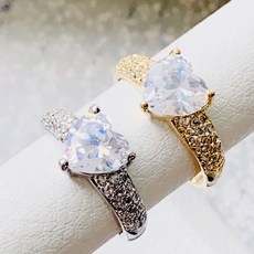 파베 세팅 볼드 하트 크리스탈 테니스 반지
