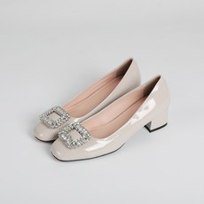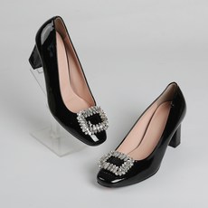 국내생산 고퀄리티 스퀘어 보석 장식 펌프스 하이힐 7cm