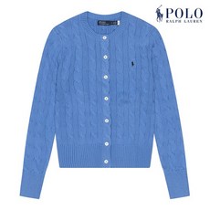 [폴로 랄프로렌] 여성 겨울 케이블 니트 코튼 크루넥 가디건 블루