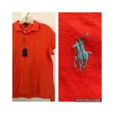 폴로 블루라벨 스키니 피케 코튼 로고 코랄 오렌지 셔츠 XL 3259577