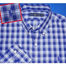 폴로 남성 블루 라벨 네이비 플레드 슬림핏 셔츠 코튼 2XL 3373773