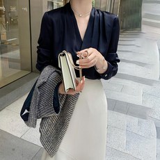 밍키비 Minky Bee 100082C 브이넥 실크 긴팔 오피스룩 여자 블라우스