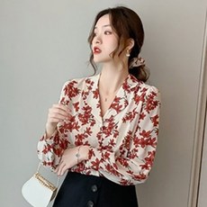 여성 실크 리본 러블리 플라워패턴 블라우스