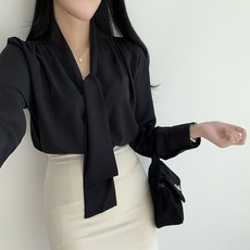 여성 여자 리본 블라우스 면접 증명사진 정장 오피스룩 시폰 새틴 리본 셔츠 남방