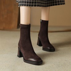 여성 편안한 스웨이드 가죽 패치 하이힐 부츠 데일리 스퀘어 통굽 앵클부츠 여자부츠 가을겨울