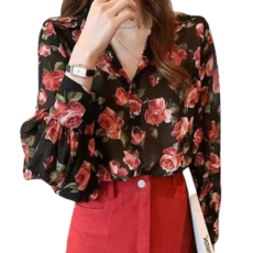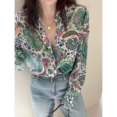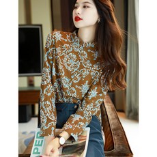 영메이 여성 블라우스 플라워패턴 긴팔 셔츠 YM23023A