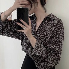 쪼예 레오파드 루즈핏 긴팔 셔츠 블라우스