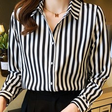 POMTOR 여성 가을긴팔셔츠 여자 바스락 루즈핏 블라우스 남방 빅사이즈셔츠 스트라이프 셔츠