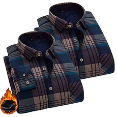 로로비 [1+1] 남성 체크 기모 셔츠 겨울 보온 남방 따뜻한 긴팔 티셔츠
