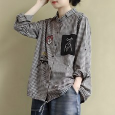 100141C 여성 체크무늬 루즈핏 셔츠남방