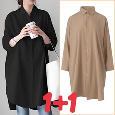 (땡처리) 빅사이즈 핏 멋지군 여성 가을 카라 레터링 하프 셔츠 날씬해보이는 흰색 솔리드 루즈핏 이너 간절기 박스 옆트임 꽃무늬 배색 긴소매 세미롱 데일리 이월상품 카디건 롱 남방