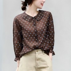 스타일아유 여성 도트 카라 블라우스 여자 카라 셔츠 남방