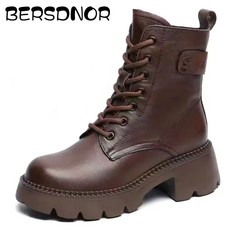 Asure 여성 워커 부츠 레이스업 부츠 미끄럼 방지 굽이 굵다 부츠 6CM
