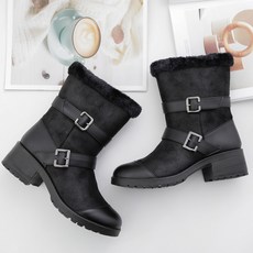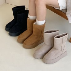 여성 통굽 모피 일체 앵글 부츠 방한 스노우 부츠 스웨이드 발편한 숏부츠