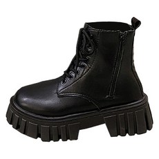데이프릴 여성 통굽 레이스업 지퍼 플랫폼 워커 부츠