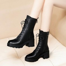 여성용 데일리 레이스업 통굽 워커 부츠 키높이 여성 통굽워커 하이 6cm