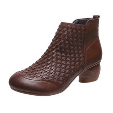 1/1+1 여성 통굽 쇼트 부츠 핸드메이드 소프트 가죽 캐주얼 앵클부츠 기모 앵클부츠 방한부츠