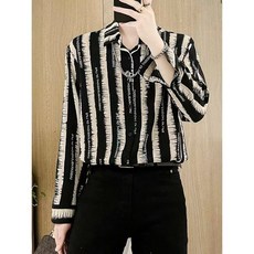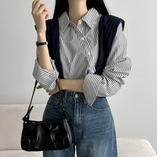 2023 삼선 버튼업 셔츠 여성 면블라우스 긴팔소매 여성큰옷 작은옷 스트라이프 세련된 숏카라 블라우스