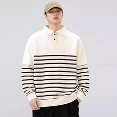 모몰라티 남성용 오버핏 심플 데일리 스트라이프 셔츠