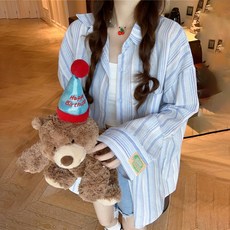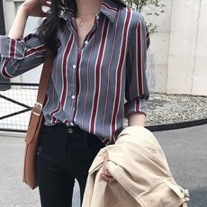 여성스트라이프셔츠/여자긴팔셔츠/루즈핏셔츠/칼라긴팔남방/링클프리셔츠/여자빅사이즈 줄무늬셔츠