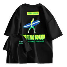 투체인지 5부 오버핏 서핑보드 빅사이즈 남녀공용 반팔 티셔츠