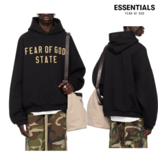 [국내배송] 24FW 피어 오브 갓 에센셜 로고 프린트 플리스 후드 티셔츠 블랙