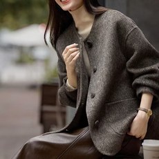 쩐쿠 여성 라운드 박시핏 데일리 모직 자켓 K0054