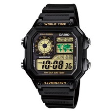 카시오 남성용 100m방수 디지털 전자 손목시계 + 액정필름 세트 AE-1200WH-1B