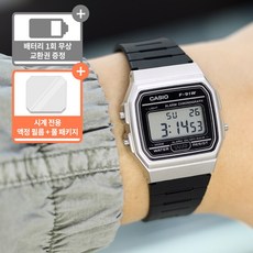 카시오 남녀공용 클래식 디지털 전자 손목시계 F-91WM + 액정필름 세트