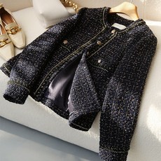 패션고리 여성 라운드넥 누빔 안감 트위드 모직 자켓 H188