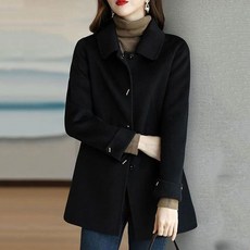 ROYALBELLE 여성 단색 카라넥 모직 코트 루즈핏 하프기장 베이직 심플 기본 코트 V111007