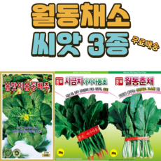 씨앗팜 월동 채소 씨앗 3종 세트 봄동배추 섬초시금치 월동춘채 씨앗 종자, 1세트