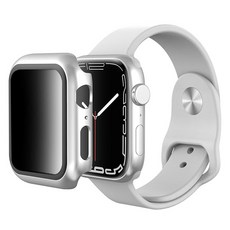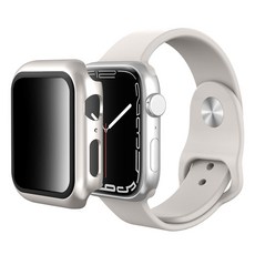 뷰씨 애플워치 사생활보호 풀커버 일체형 9H 강화유리 액정보호 케이스, 실버