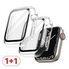 뷰씨 애플워치 슬림 하드 풀커버 일체형 9H 강화유리 액정보호 케이스, 투명+투명