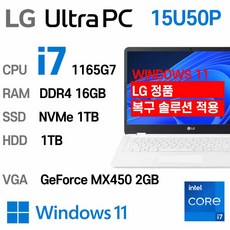 LG 중고노트북 [[ 단기사용 ]] LG Ultra Gear 15U50P i7 intel 11세대 최신 노트북, WIN11 Pro, 16GB, 1TB, 코어i7 1165G7, 스노우화이트 + HDD 500GB