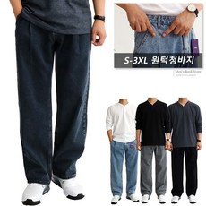 [맨즈북] 빅사이즈 와이드핏 중년 남성 통청바지 반밴딩 데님팬츠 봄 가을 겨울용