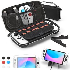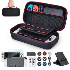 Younik 스위치 OLED 휴대용 16 in 1 액세서리 세트 보관 가방 블랙, 1개
