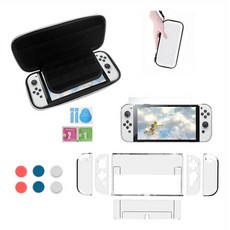 닌텐도 스위치 케이스 OLED 액세서리 키트 포함 케이스 클리어 커버 스위치 본체 지지 화면 보호기 버튼 보호, 1세트