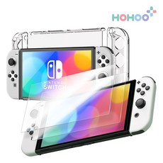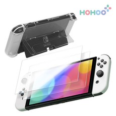 닌텐도 스위치OLED 크리스탈 하드케이스+액정 보호필름 악세사리 조이콘 케이스 강화유리, OLED 크리스털 하드케이스+강화유리필름