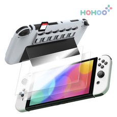 HEYSTOP 닌텐도 스위치 OLED 케이스 파우치 하얀+케이스+강화유리 액정보호필름+버튼캡, 하얀, 1개