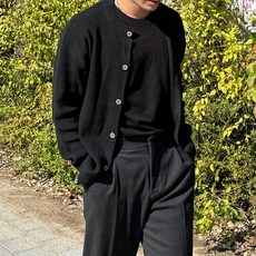 왓위웨어 남자 캐시미어 울 라운드 가디건 오버핏 하찌 프리미엄 니트