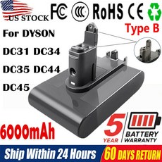 리튬 이온 진공 배터리 다이슨 교체용 휴대용 전동 공구 배터리 B 타입에만 적합 DC31 DC31B DC35 DC44 DC45 222V 4000mAh, 1) 1 PACK