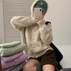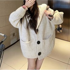 besteffie 니트가디건 여성 봄 가을 데일리 루즈핏 빅사이즈 가디건 두툼한 긴팔 스웨터 가디건 니트 후드 가디건 E88