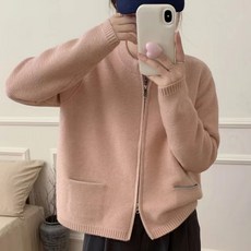 둥스마켓 4color 단정한 여성 노카라 투웨이 집업 니트 핑크 가디건